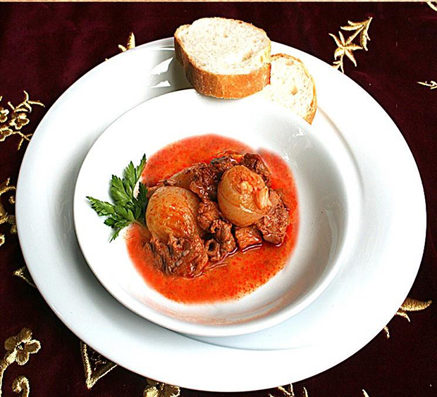 Bir hayli lezzetli olan et yemeklerinden biri olan Coğrafi İşaret Belgeli Sarımsaklı Et yemeği, kuşbaşı et, soğan ve salçanın kavrulmasıyla hazırlanıyor ancak bu yemeğin yıldız bir oyuncusu var: Kabuklu Sarımsak! Olur mu demeyin, çok da güzel olur.
